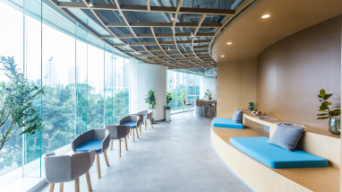 目林,汲取自然生气,锐意打造城中共享办公新定义——将绿色自然元素巧融于现代建筑中,打造人与自然和谐共处的写意工作环境。以四季景致为壁画,以自然光影为点缀,在层层绿逸之间让心情豁然舒展,让灵感盎然迸发。目林亦配备全面高端的办公设备,满足多元类型的办公所需,为都市一族打造轻松写意、活力盎然的共享办公新体验。广州COHESION目林办公空间广州国际贸易中心广州国际贸易中心是一栋位于天河北路与林和西路交汇处(即中信广场旁边)的甲级写字楼,地铁出口,数百条公交近在咫尺。 该大厦占地6032平方,总建筑面积7万平方米,地上43层,地下2层。是一幢集展销,商住、办公于一体的多功能综合大楼,周边的商务氛围浓厚,周边及大厦设备配套先进与齐全、地理位置显要、交通方便的高科技智能大厦,总高166.8米。大厦内主要以知名大公司入驻,租户稳定。沉浸体验的共享办公空间,激发创造力与灵感,造就全新的办公空间新体验。