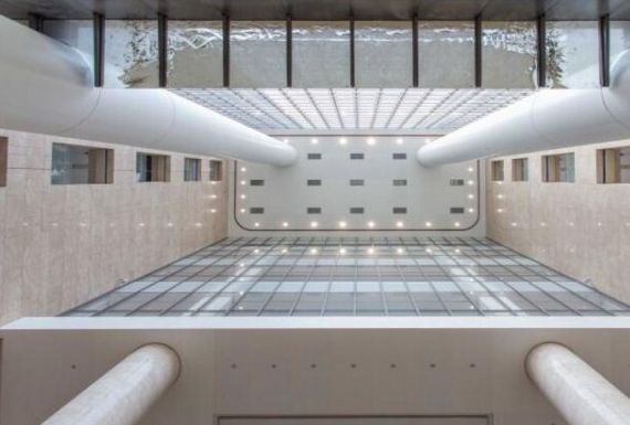 南侧挑高38米,占据8个楼层高度