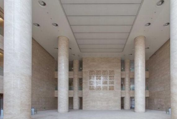 建筑外幕墙全是由花岗岩石材配合钢化玻璃制成,整体线条清晰明朗。