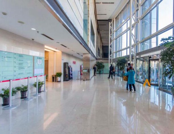 大堂大门朝北,面向建国门外大街。