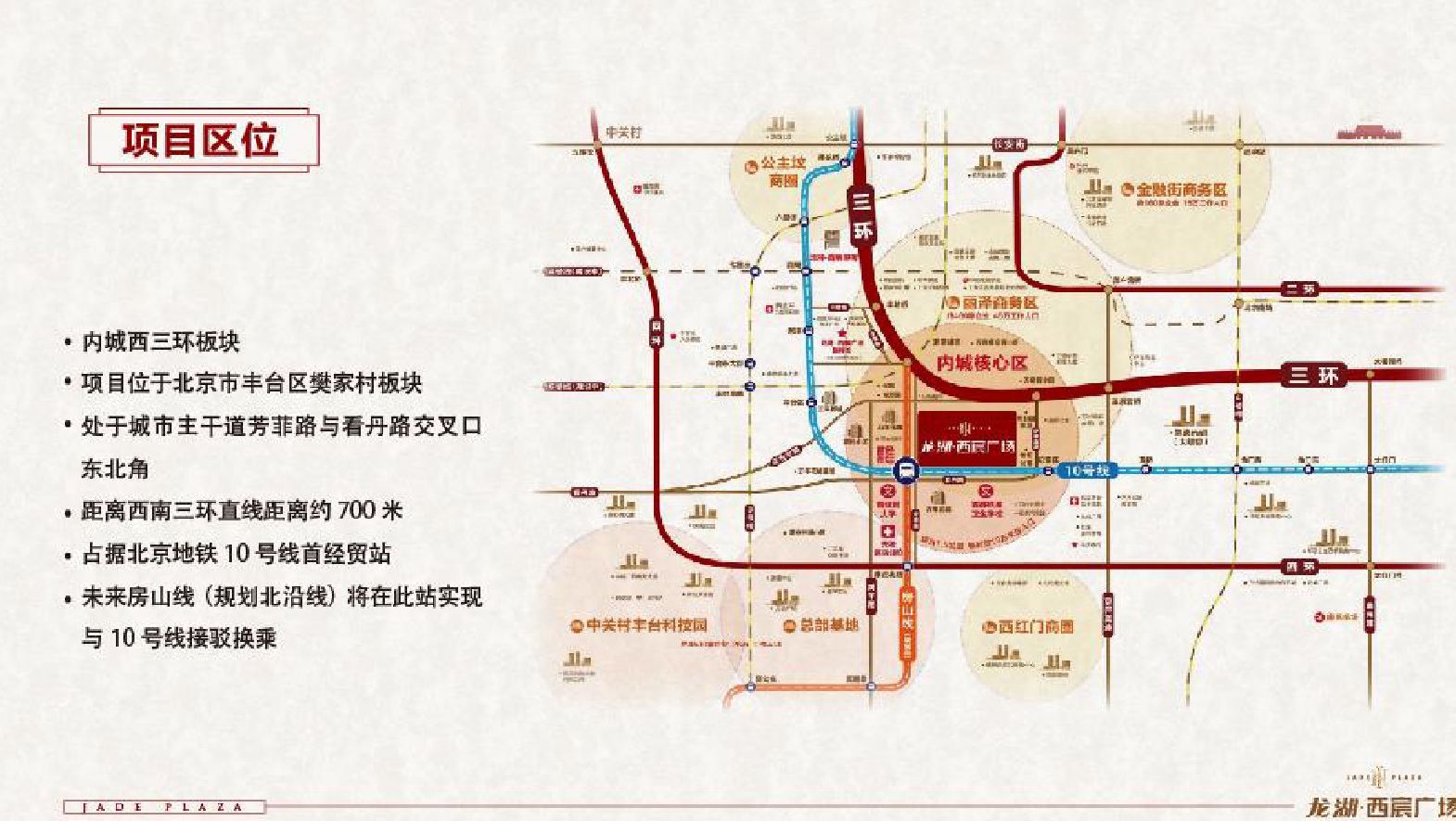 龙湖·西宸广场是龙湖地产在北京市丰台区三环沿线10号线与房山线北沿线(规划中)的交汇换乘站——首经贸站B口打造的全新商业体项目。