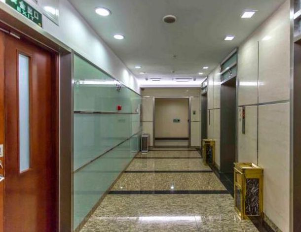 大堂及公共部分:大堂及电梯厅:地面选用巴西紫点金麻大理石铺装,墙面装饰选用意大利木化石,大厦入口设有四道进口超大自动感应玻璃门。大堂中心设有LED彩色显示屏,客户可及时了解大厦物业发布的信息