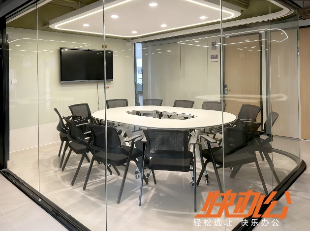 中会议室:可容纳8-12人;配备一体机;免费网络;独立空调;免费饮水机和一次性纸杯